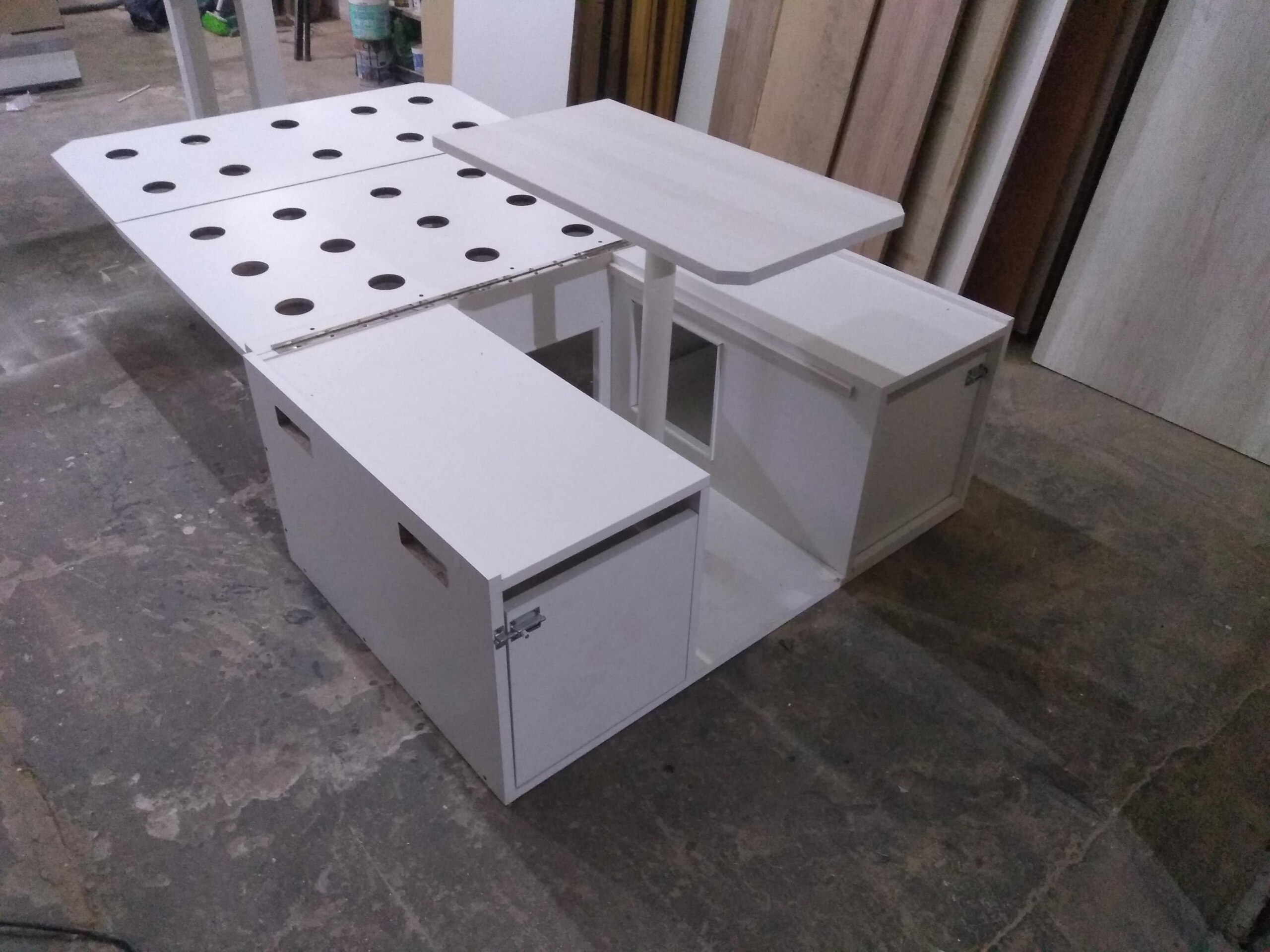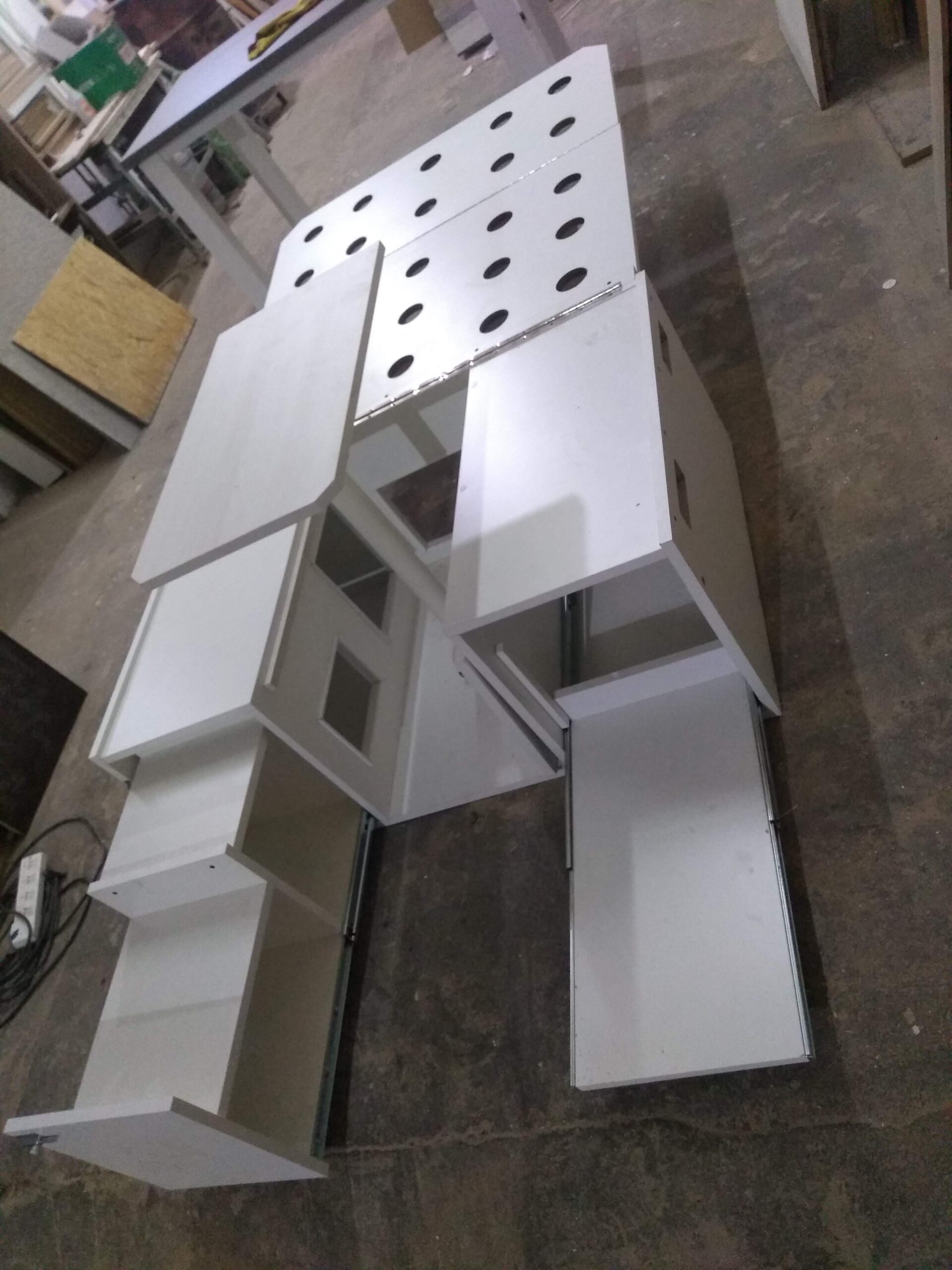 Materiales: Contamos con dos opciones, melamina blanca 18 mm o fenólico 18 mm.