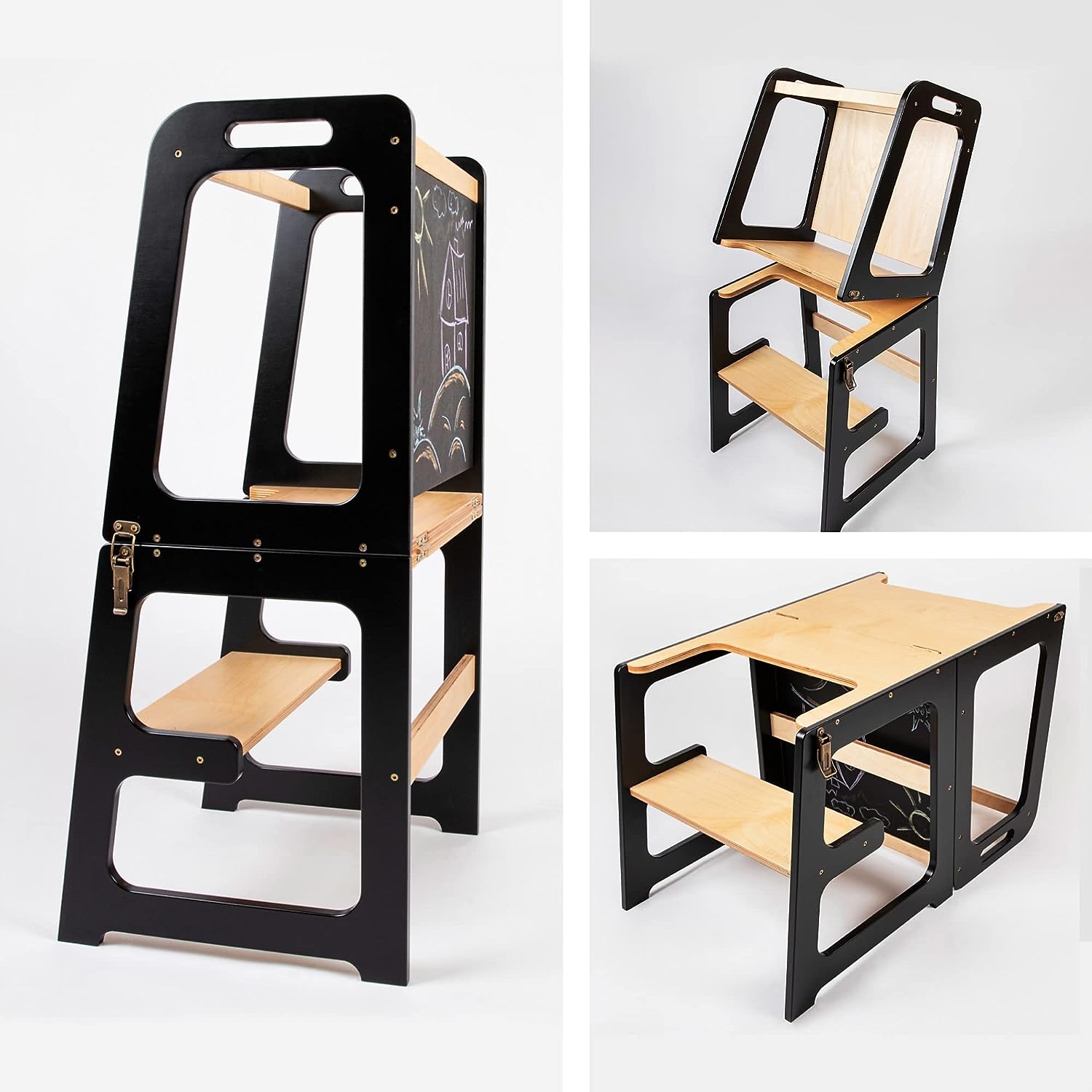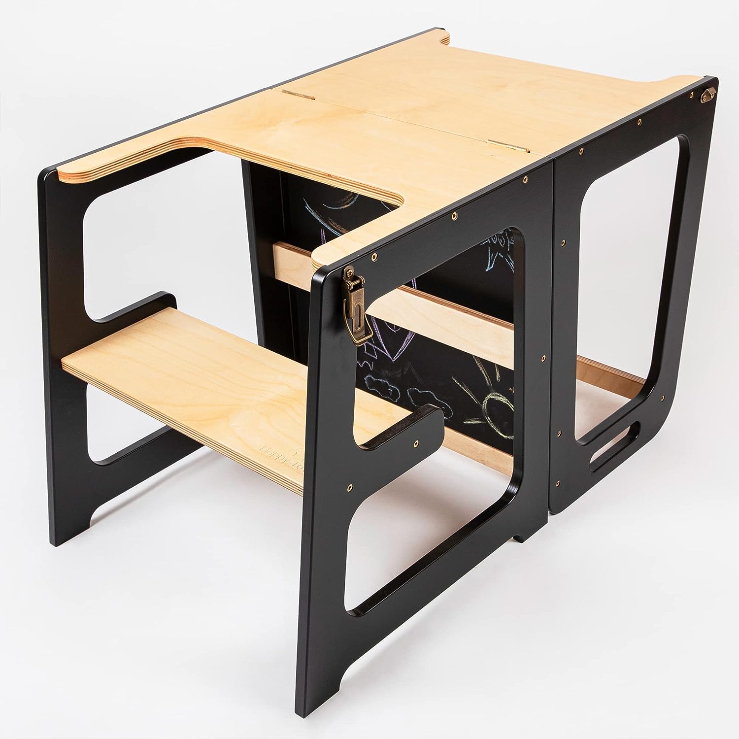 Con esta torre de aprendizaje multifunción, los chicos podrán desarrollar sus habilidades de manera segura y sin riesgos. Además, al plegarla y convertirla en una mesa con espacio para sentarse, van a sentir que tienen algo diseñado especialmente para ellos. Y como valor agregado, podrán potenciar al máximo su creatividad utilizando la pizarra incorporada.